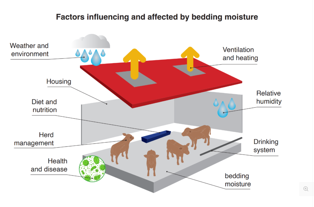 1. Moisture Already in the Bedding Once bedding is saturated with urine, manure, and spills, it dries much slower. Regularly removing wet bedding, preventing spills, and adding fresh bedding often are essential for maintaining a dry environment.